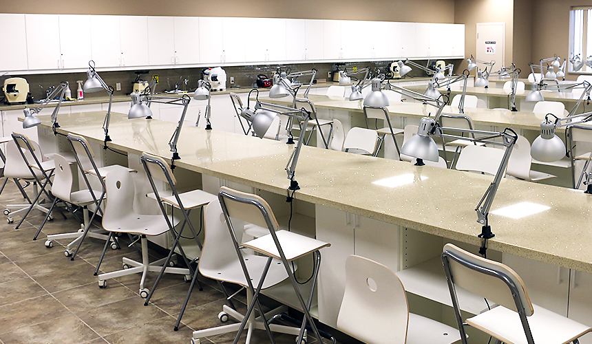 The pre-clinic lab is also state of the art with individual student stations. The lab features bacteria resistant stone countertops, an open environment and all necessary pre-clinical equipment. This allows the instructors to better be able to assist the students in their learning and comprehension.